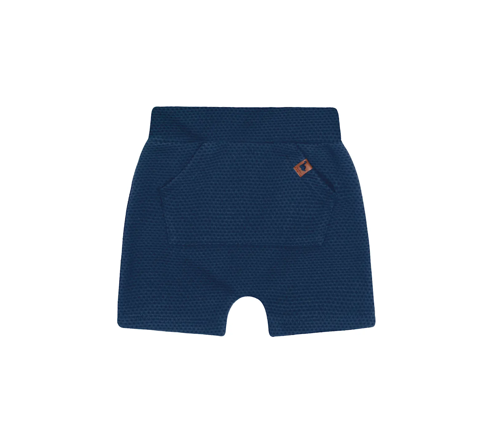Bermuda para bebê menino, confeccionada em meia malha maquinetada em azul marinho, com bolso frontal único e detalhe em cadarço de algodão. Possui cintura com elástico confortável e ótimo caimento. Ideal para compor looks descolados no verão.