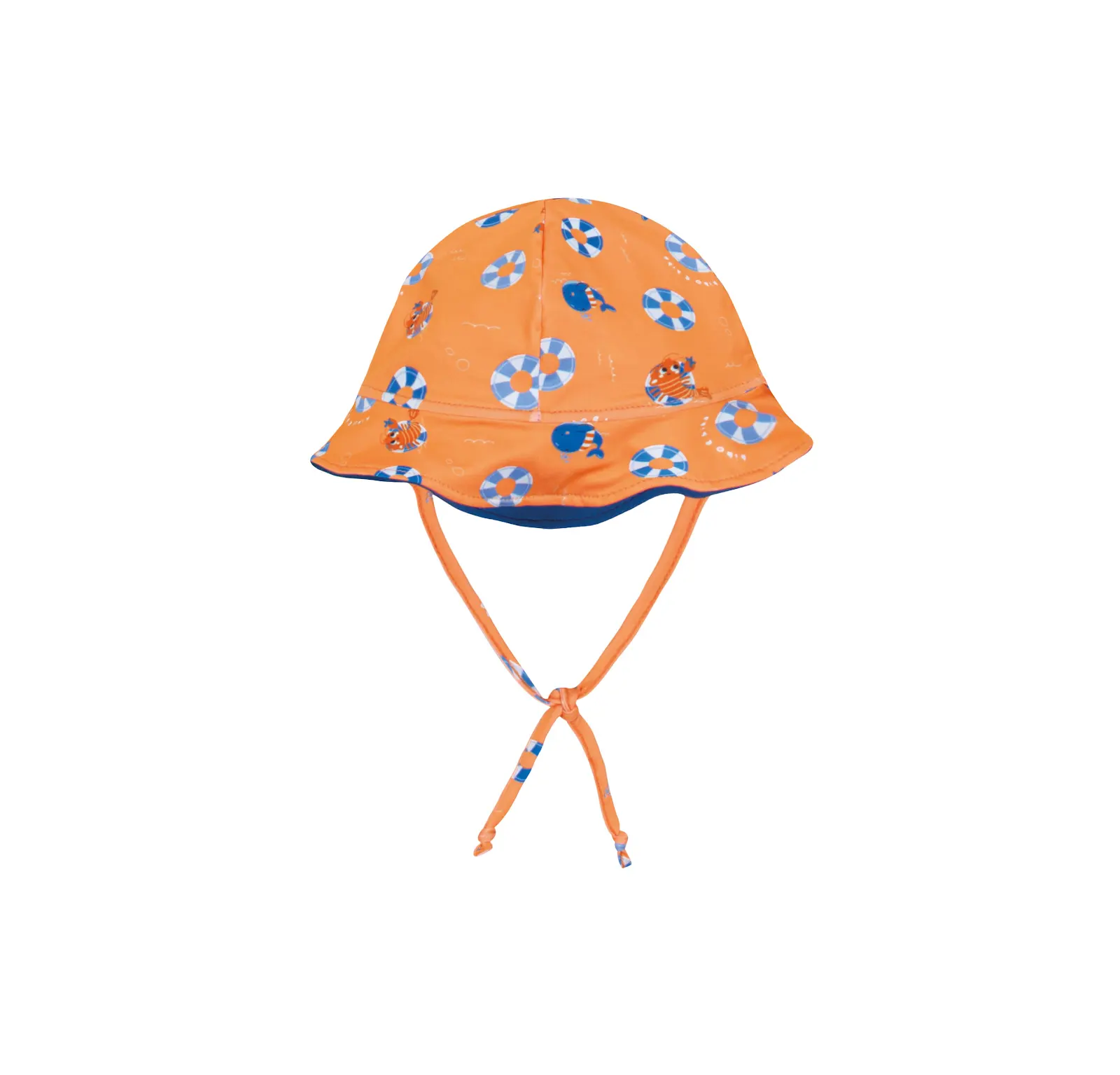 Chapéu para bebê menino de 1 a 3 anos ( tamanho único), confeccionado em material dupla face com proteção UV 50+. Possui cordão para amarração e ajuste na cabeça.